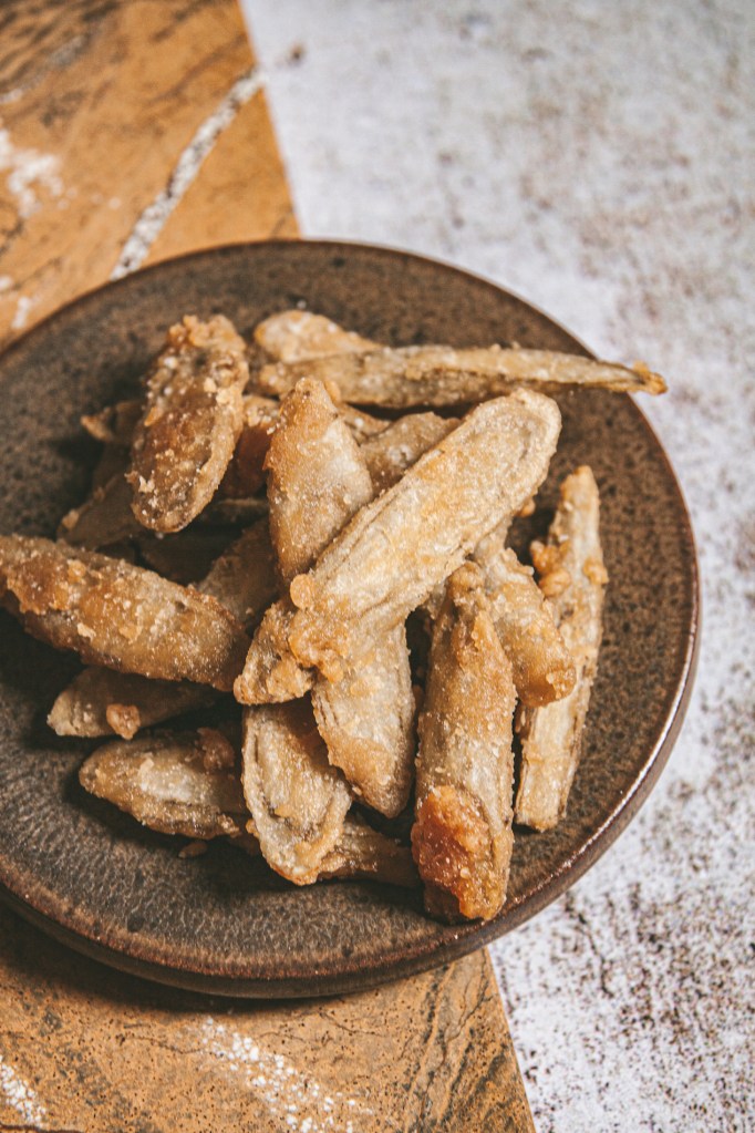 Thành phẩm là một món chiên giòn rụm, thơm nức và lạ miệng.