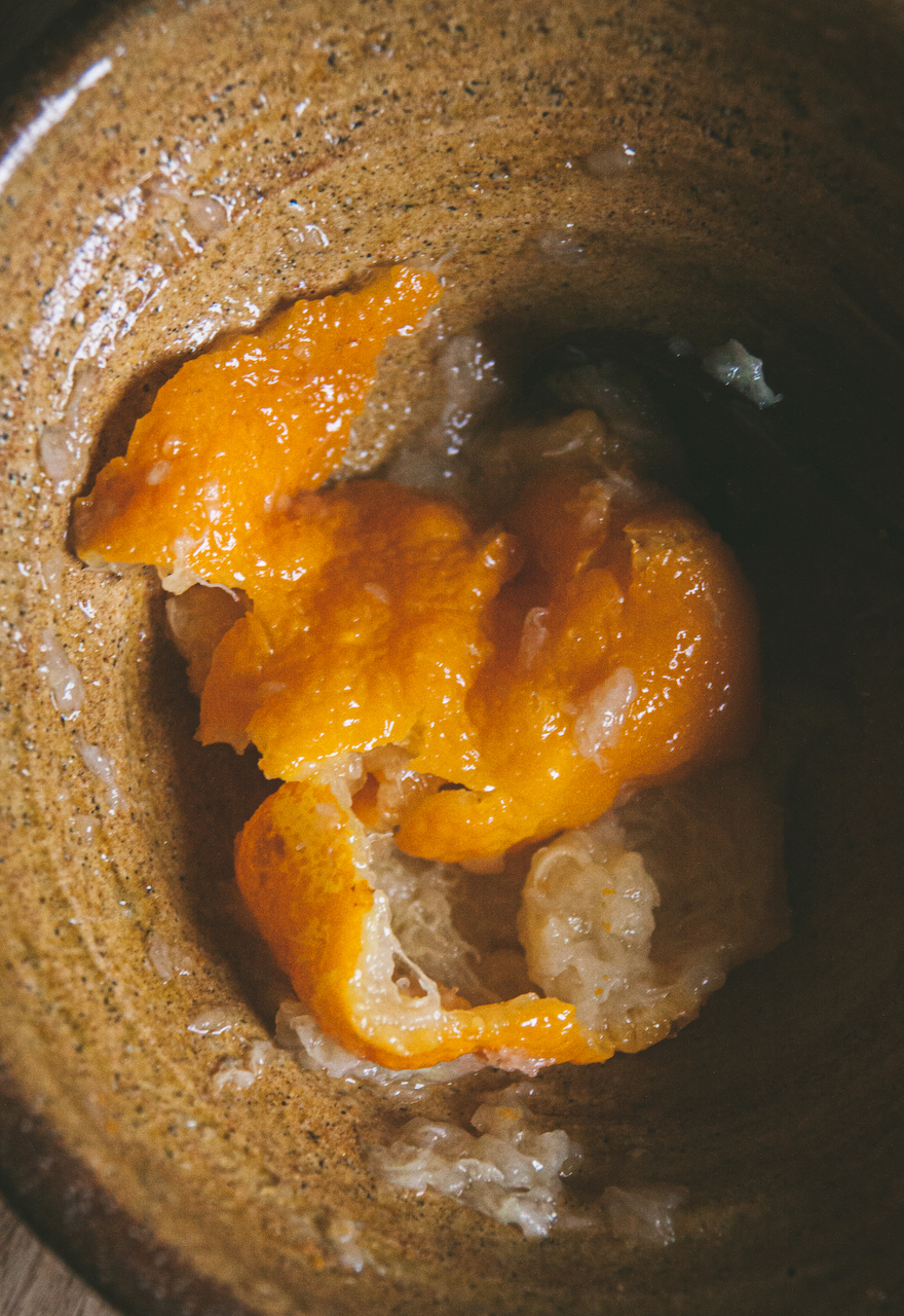 - Nghiền mịn nguyên quả yuzu.